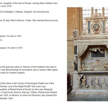 Genealogy Summary for Sir Edward Lewis and Lady Anne Sackville’s Children